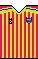 - Uniforme titular: Camiseta roja y amarilla, pantalón azul, medias rojas.