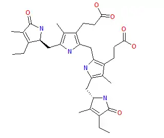 | ácido 3-[2-[[3-(2-carboxietil)-5-[(3-etil-4-metil-5-oxo-1,2-dihidropirrol-2-il)metil]-4-metil-1H-pirrol-2-il]metil]-5-[(4-etil-3-metil-5-oxo-1,2-dihidropirrol-2-il)metil]-4-metil-1H-pirrol-3-il] propanoico[1][2] | ||