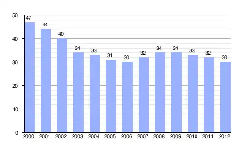 | Gráfica de evolución demográfica de Urria entre 2000 y 2012 |