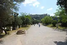 La Vía Panatenaica era la calle principal de la Antigua Atenas. Iba desde la puerta Dípilon hasta la Acrópolis, a 1 km de distancia, atravesando el Ágora en diagonal, de noroeste a sureste.[1]