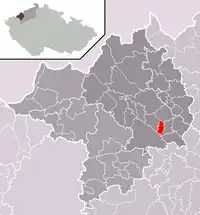 Se encuentra ubicada al noroeste de la región, en la ladera sur de los montes Metálicos, cerca del río Ohře —un afluente izquierdo del río Elba—, de la región de Karlovy Vary y del estado alemán de Sajonia.[1]