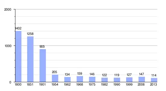 | Gráfica de evolución demográfica de Val-d'Oronaye entre 1800 y 2013 |