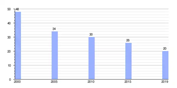 | Gráfica de evolución demográfica de Valbuxán entre 2000 y 2019 |