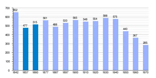 | Gráfica de evolución demográfica de Valdecolmenas de Abajo[2] entre 1842 y 1970 |