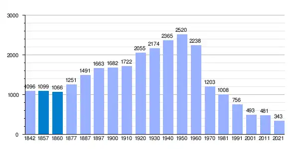| Gráfica de evolución demográfica de Valdelacasa de Tajo[1] entre 1842 y 2021 |