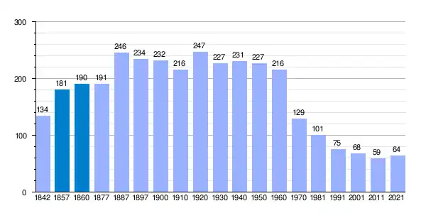 Gráfica de evolución demográfica de Valdemierque[9] entre 1842 y 2021