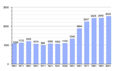 | Gráfica de evolución demográfica de Valdengo entre 1861 y 2001 |