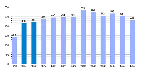 | Gráfica de evolución demográfica de Valdesaz[8] entre 1842 y 1960 |
