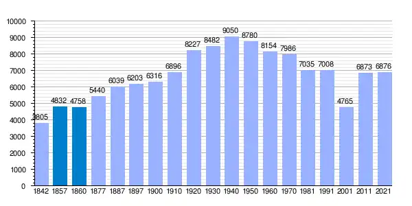 | Gráfica de evolución demográfica de Valdoviño[2] entre 1842 y 2021 |