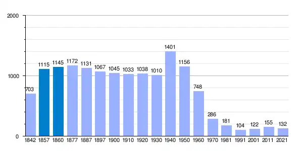| 1842 | 1857 | 1860 | 1877 | 1887 | 1897 | 1900 | 1910 | 1920 | 1930 | 1940 | 1950 | 1960 | 1970 | 1981 | 1991 | 2001 | 2011 |