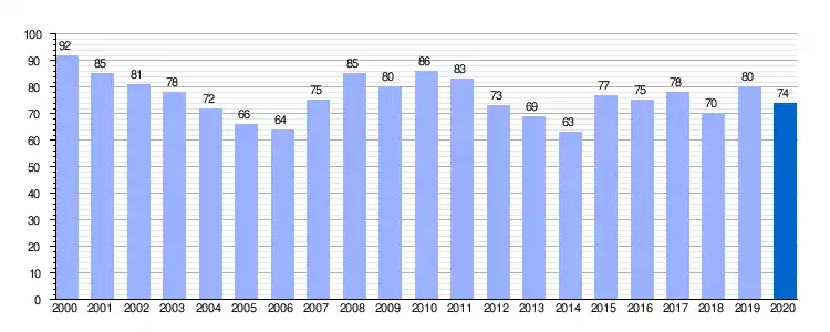 | Gráfica de evolución demográfica de Vallejo de Orbó entre 2000 y 2020 |