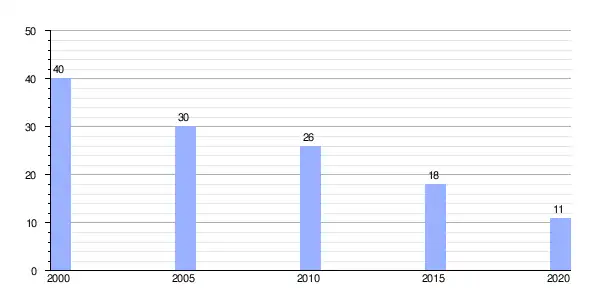 | Gráfica de evolución demográfica de Valverde (parroquia) entre 2000 y 2020 |