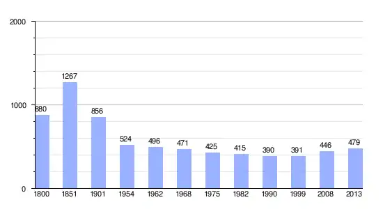 | Gráfica de evolución demográfica de Valzin-en-Petite-Montagne entre 1800 y 2013 |