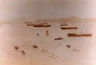 ![]() Transporte Toltén (primero a la derecha) durante el desembarco en Curayacu. | ||