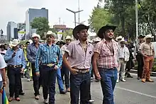 En México comenzó a gestarse una propia cultura gay vaquera con la ayuda de inmigrantes mexicanos en los Estados Unidos, quienes desarrollaron actividades dentro del ámbito de la vida nocturna, mezclando elementos culturales del Lejano Oeste con la cultura charra como distintivos propios de la cultura mexicana. En Ciudad de México, como también en los estados de Zacatecas y San Luis Potosí se organizan periodicamente distintos tipos de encuentros y reuniones de vaqueros gay, donde hombres homosexuales y bisexuales vestidos con sus atuendos típicos disfrutan de bailes y cantos de la música regional mexicana, beben tequila y otros tragos locales y disfrutan de la gastronomía típica nacional.[3]