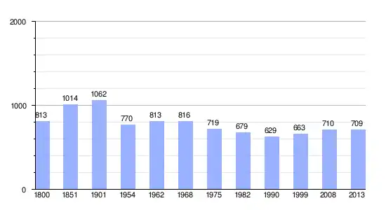 Los datos demográficos contemplados en este gráfico de la comuna de Varennes-sur-Fouzon[4] se han cogido de 1800 a 1999 de la página francesa EHESS/Cassini, y los demás datos de la página del INSEE.[5]