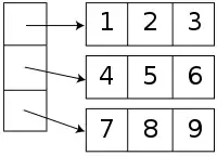 - Vector de X dimensiones: Típicamente, los vectores multidimensionales se representan utilizando un vector 1-dimensional que contiene referencias (o punteros) a otros vectores 1-dimensionales. Estos subvectores pueden ser, indistintamente, las filas o las columnas de la matriz, todo depende del criterio o la interpretación que se quiera tomar.
