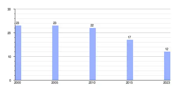 | Gráfica de evolución demográfica de Veirada entre 2000 y 2023 |