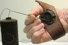 Había varios tipos de hilo. El hilo de empalomar, más grueso que el de coser velas, se usaba para coser la vela a la relinga.[4][5]