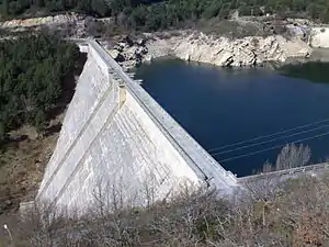 - El embalse de Compuerto está situado en el término municipal de Velilla, con su presa a la altura de Otero de Guardo, terminada en el año 1960, y tiene una capacidad de 95 hm³ de agua.[5]