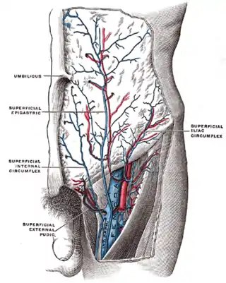 - Vena circunfleja iliaca superficial: vena de trayecto subcutáneo que acompaña a la arteria homónima.