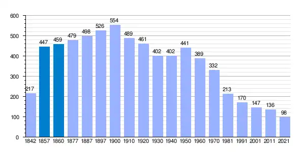 Cuenta con una población de 108 habitantes (INE 2023). La población está registrando un progresivo descenso desde el último tercio del siglo XX como consecuencia del envejecimiento de la población, la escasez de nacimientos y la emigración hacia núcleos más dinámicos.[48]