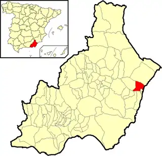Integrado en la comarca del Levante Almeriense, se sitúa a 86 kilómetros de la capital provincial.