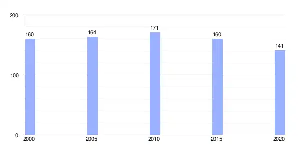 | Gráfica de evolución demográfica de Veral (parroquia) entre 2000 y 2020 |