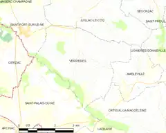 Verrières es una población y comuna francesa, en la región de Poitou-Charentes, departamento de Charente, en el distrito de Cognac y cantón de Segonzac.