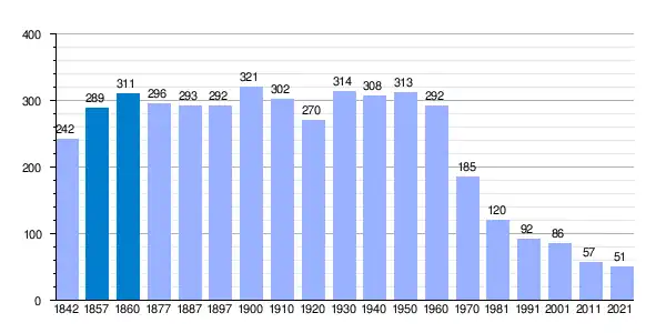 | Gráfica de evolución demográfica de Viñegra de Moraña[1] entre 1842 y 2021 |