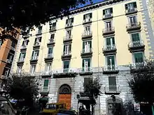 El segundo palacio es el Palazzo Scognamiglio, diseñado por Giuseppe Califano por encargo de Raffaele Scognamiglio (cuyas iniciales son visibles sobre el portal), que tiene una fachada con elementos neoclásicos como el portal con balcón en relieve respecto a la fachada, la planta baja almohadillada, las ventanas con tímpano en la primera planta, la cornisa con lesenas y hojas y, en la última planta, un tímpano sostenido por dos columnas y cuatro lesenas.[3]
