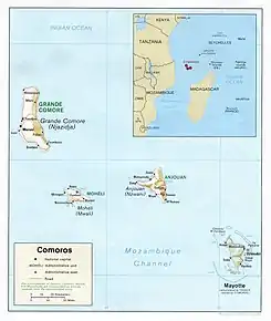 La administración apostólica de las Islas Comoras fue erigida el 5 de junio de 1975 con el decreto Quo aptius de la Congregación para la Evangelización de los Pueblos separando territorio de la diócesis de Ambanja.[1] El 6 de julio de 1975 las islas de Gran Comora, Anjouan y Mohéli se independizan de Francia como Comoras, mientras que Mayotte sigue siendo un territorio de ultramar francés (en 2011 pasó a ser departamento de ultramar).