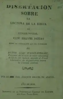- «Disertación sobre la lectura de la biblia en lengua vulgar...publicado el Señor Isaac Wheelwright...». Tienda BEAEP. Consultado el 24 de noviembre de 2022.