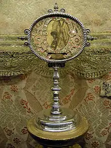 Se conserva en el Monasterio de la Encarnación un locutorio donde se narra el siguiente suceso. Hablando un día fray Juan y la madre Teresa de la Santísima Trinidad, fray Juan fue movido como por una fuerza irresistible y se levantó, o fue levantado súbitamente, quedando de pie. Uno de los biógrafos de su tiempo añade que el ímpetu fue tal que salió despedido hacia el techo, llevándose incluso la silla. La madre Teresa, sorprendida, preguntó por lo ocurrido: