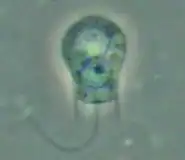 Euglena mutabilis un flagelado fotosintético | Existen muchos mixótropos entre los protistas, incluidos entre los ciliates, rhizaria y dinoflagelados[83] | ||