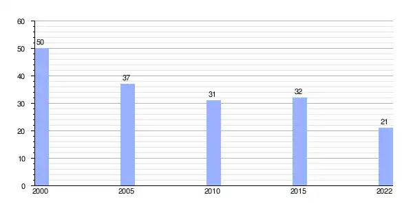 | Gráfica de evolución demográfica de Vidueira (parroquia) entre 2000 y 2022 |