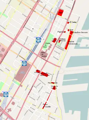 Allí se encuentran algunos museos: Pointe-à-Callière, el Musée du Château Ramezay, el musée d'archéologie de la Chapelle Notre-Dame-de-Bon-Secours, etc. Ciertos edificios datan de principios del siglo XVII.