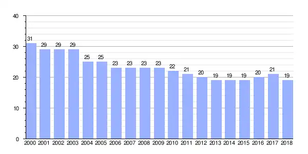 | Gráfica de evolución demográfica de Vigo entre 2000 y 2018 |