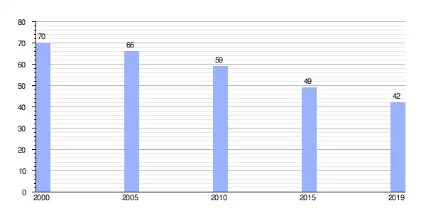 | Gráfica de evolución demográfica de Vilachá entre 2000 y 2019 |