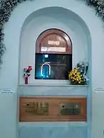 En 1952, sus restos fueron trasladados y recibieron definitiva sepultura en el atrio de la iglesia parroquial de Nuestra Señora del Tránsito.