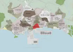 El barrio está limitado por las avenidas de El Secano, Blas Infante, Paseo del Río de la Miel y Virgen del Carmen correspondiendo con el recinto de las antiguas murallas medievales.[1]
