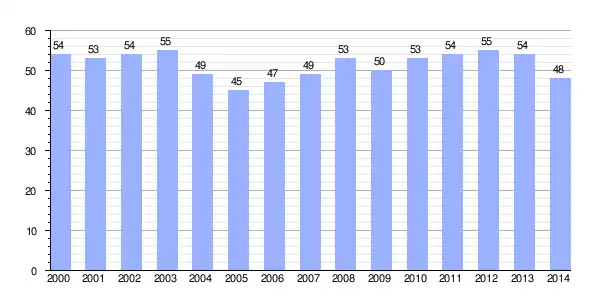 | Gráfica de evolución demográfica de Villacontilde[2] entre 2000 y 2014 |