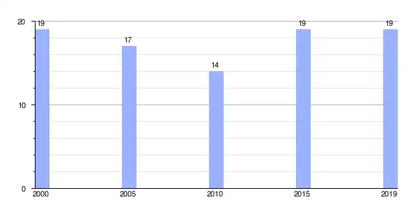 | Gráfica de evolución demográfica de Villaestrofe (parroquia) entre 2000 y 2019 |
