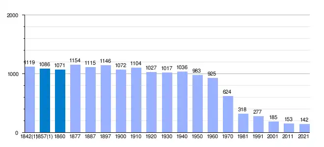 | Gráfica de evolución demográfica de Villafranca de la Sierra[26] entre 1842(1) y 2021 |