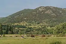 - Cabe reseñar la presencia del recientemente introducido corzo (Capreolus capreolus), la importante población de jabalí (Sus scrota) que campa a sus anchas ante la inexistencia de depredadores naturales —desde el 2004 se han señalado posibles avistamientos de lobo[20][21] (Canis lupus), especie que era abundante hace años, y que fue extinguida; si bien parece que aún no se han establecido de forma permanente, quedando reducido todavía a regiones más septentrionales—, el zorro (Vulpes vulpes), el gato montés (Felis silvestris), el tejón (Meles meles), la gineta (Genetta genetta), la garduña (Martes foina) y la comadreja (Mustela nivalis).