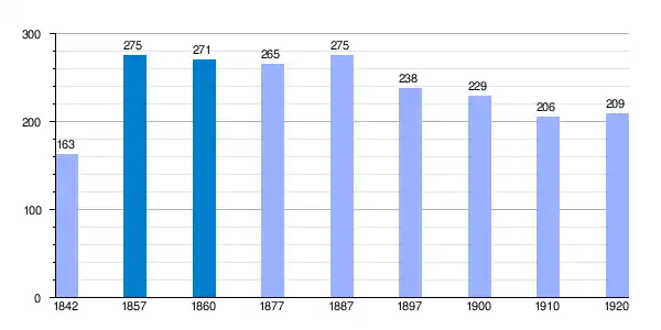 | Gráfica de evolución demográfica de Villalómez[2] entre 1842 y 1920 |