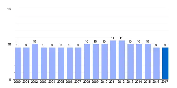 | Gráfica de evolución demográfica de Villamanca[3] entre 2000 y 2017 |