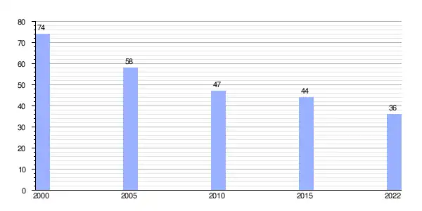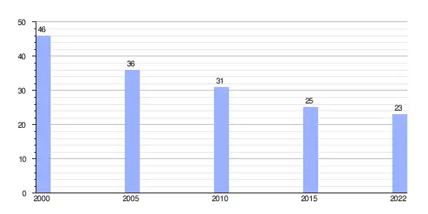 | Gráfica de evolución demográfica de Villamayor (parroquia) entre 2000 y 2022 |