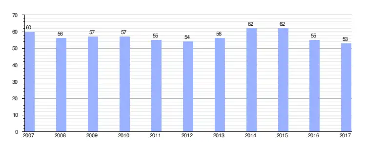 | Gráfica de evolución demográfica de Villamediana de la Vega entre 2007 y 2017 |