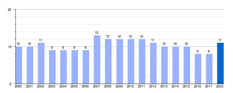 | Gráfica de evolución demográfica de Villamezán entre 2000 y 2023 |